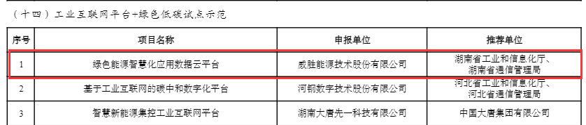 近日,國家工業和信息化部發布的2023年工業互聯網試點示范項目名單公示完畢,惟遠能源自主研發的“綠色能源智慧化應用數據云平臺”成功入選2023年工業互聯網試點示范項目。